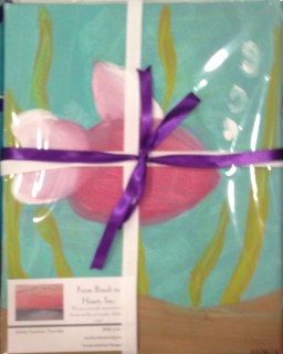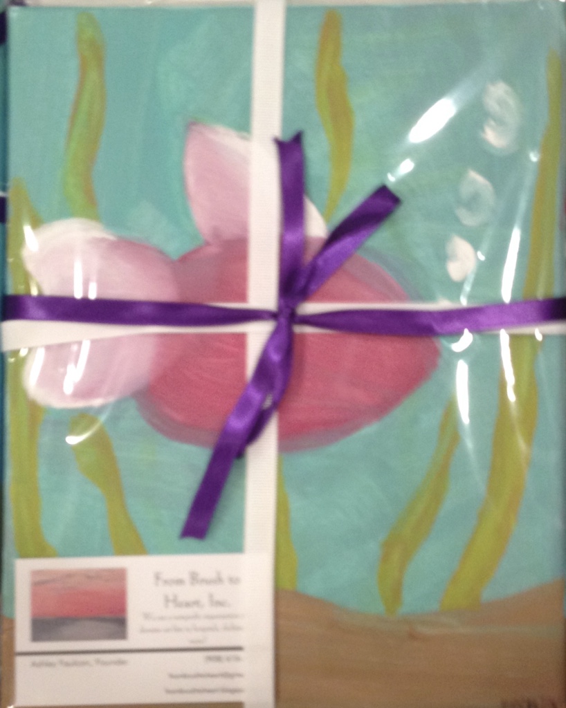 Step 1: Paint on any canvas; From Brush to Heart usually paints on size 8×10 for our donations. Remember that it doesn’t matter what you paint so long as it is unique, colorful, and uplifting. We range from abstract paintings to paintings of objects, so really it is up to you!