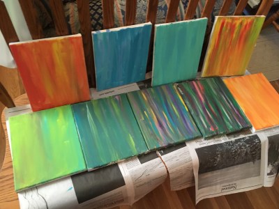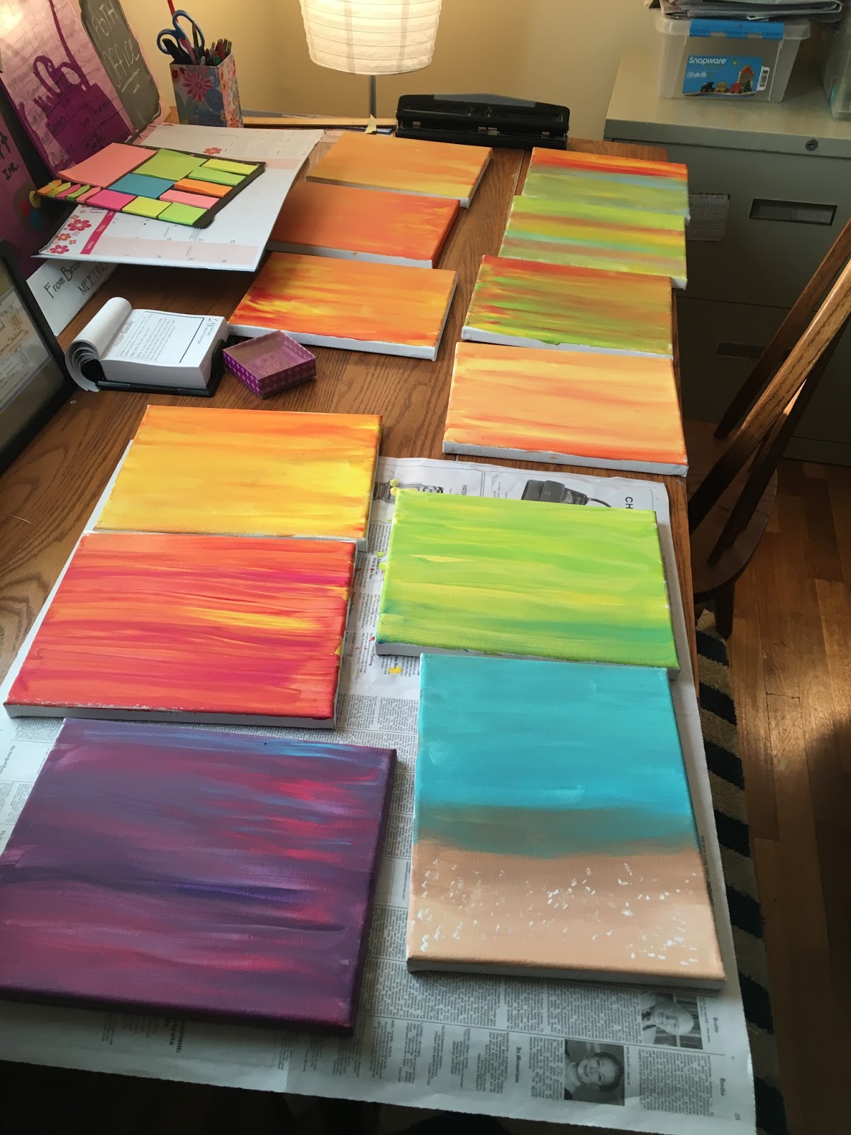We are making a lot of progress on our 60 kit donation for this month. We painted upwards of thirty paintings today!