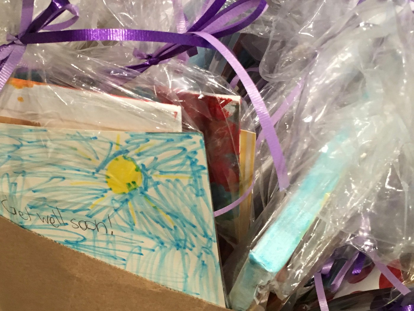 Finally, 25 of the art kits included in this donation were created by kids that attended our booth at the Fine Arts Festival. The kids made a painting and a card that said, ‘Get Well Soon’. This means so much to me because it just goes to show that you are never to young to do something nice.