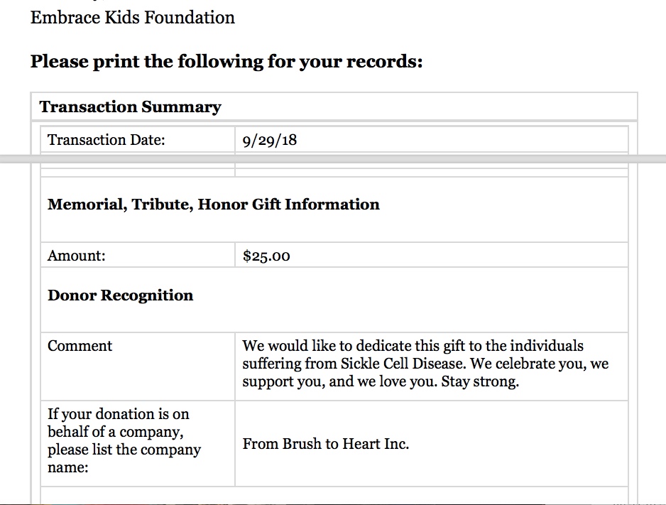 For our monthly donation, we decided to stray from our usual path of donating art supplies, to make a monetary donation to the Embrace Kids Foundation. For those who do not know, the Embrace Kids Foundation is a non-profit organization that focuses on bettering the lives of children with chronic and terminal illnesses. I myself have Sickle Cell Disease, and when I was in the hospital multiple times a year growing up, Embrace Kids were there to provide games, activities, and snacks. I love what their organization stands for and i think they are a great example of how wonderful this world can be when we all work together. For more info about this organization, please Click Here .