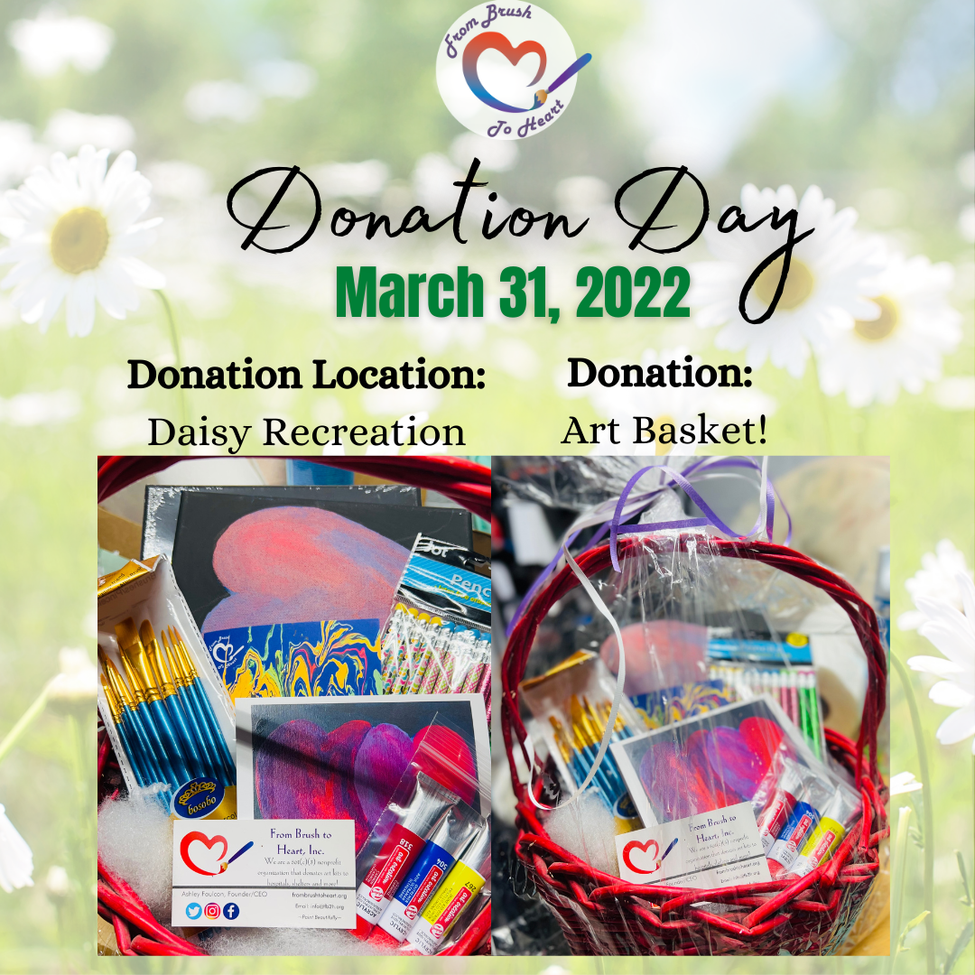 On March 31, 2022, we donated an Art Basket to the Daisy Recreation Program for their Tricky Tray in April! Daisy Recreation provides programming for individuals with special needs in East Brunswick, NJ and the surrounding areas. If you are interested in supporting Daisy Recreation, visit: https://eastbrunswick.org/306/Daisy-Recreation