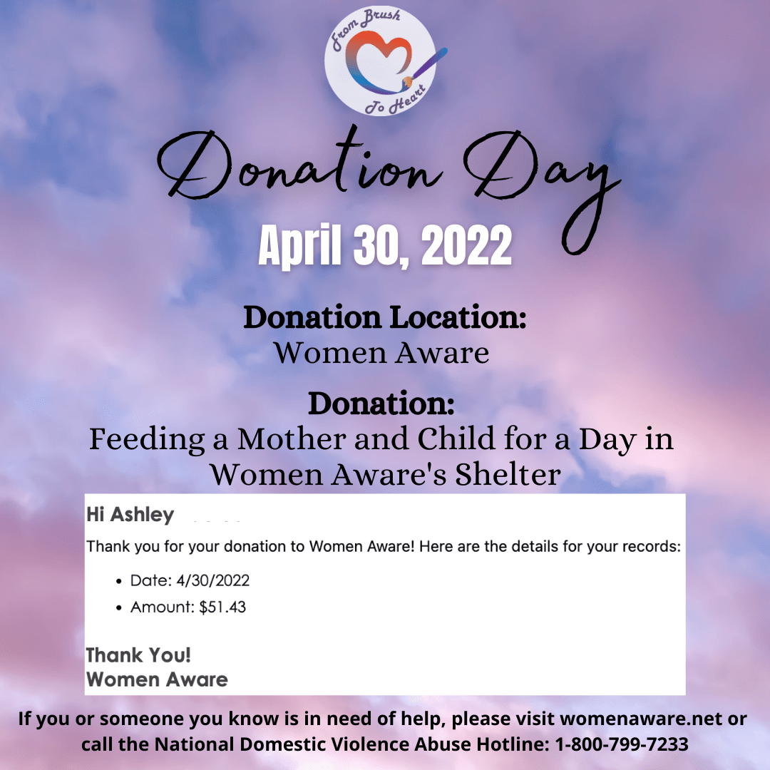 I hope you are having a great day! On this final day of the month, I wanted to come on here to talk about April’s donation. This month, we donated to Women Aware, which is an organization that helps women and children who are battling domestic abuse. This donation means a lot to us because we as an organization know women who have been battered and abused, and who struggle to leave their abusers (for various reasons). Our donation today aims to signify to all that there is hope and help. We see you, we believe you, and we are rooting for you. You are beautiful and you deserve the very best.