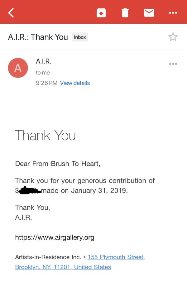 Hello FBTH Family!! This month, we were fortunate enough to donate to A.I.R., a 501(c)(3) nonprofit that champions women artists and gives them a space to freely showcase their creativity. More specifically, we donated to the Emma Bee Bernstein Fellowship Fund, which gives support to 6 women trying to expand their careers as accomplished artists.... Continue Reading →