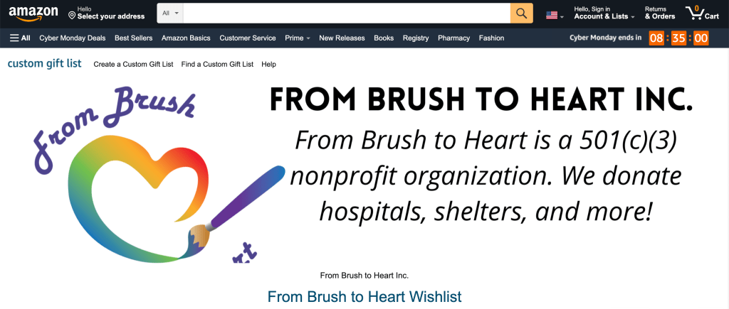 (3) Purchase an item off of our Amazon Wish List! We are always in need of art supplies for the donations we give and the community events we participate in. Your assistance would be so helpful! Amazon Wish List Link: https://www.amazon.com/registries/custom/37SVU14FVH8MY/guest-view