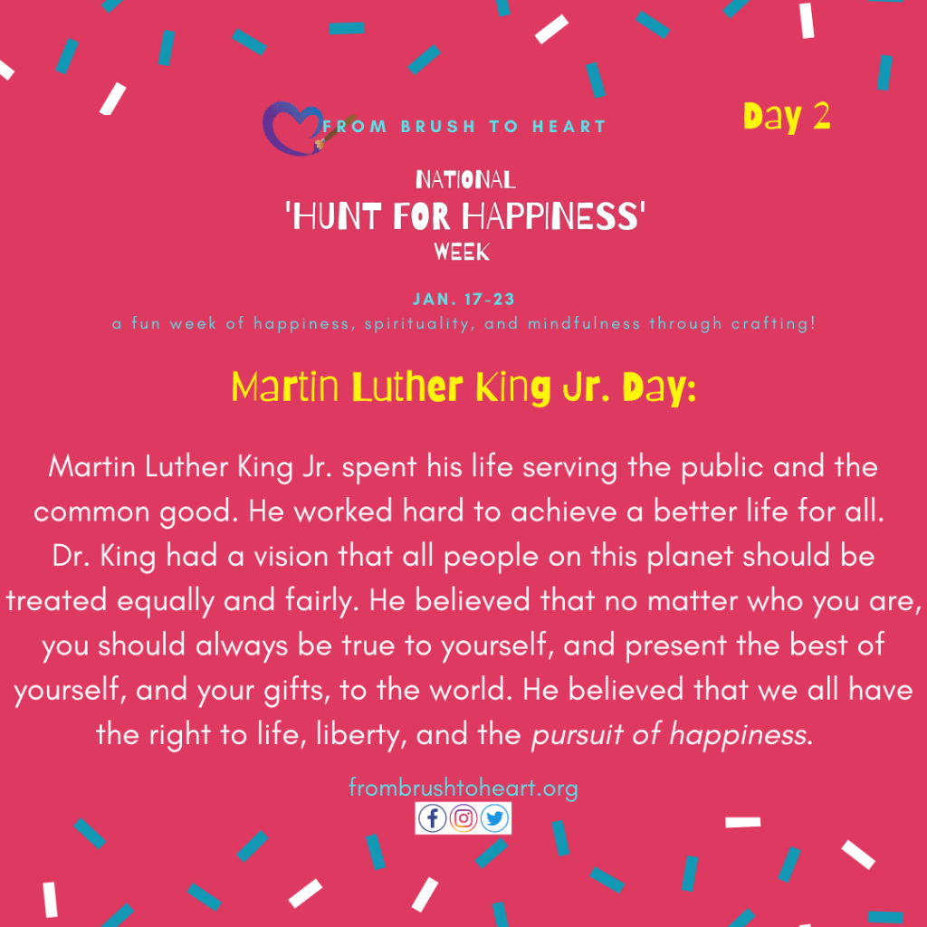 From January 17th-23rd, we will be featuring different videos and crafts that have to do with happiness. We are going to show you how to increase your happiness through crafting, and mindfulness. We will be posting our pictures from Hunt for Happiness Week here, so please be sure to be on the lookout!