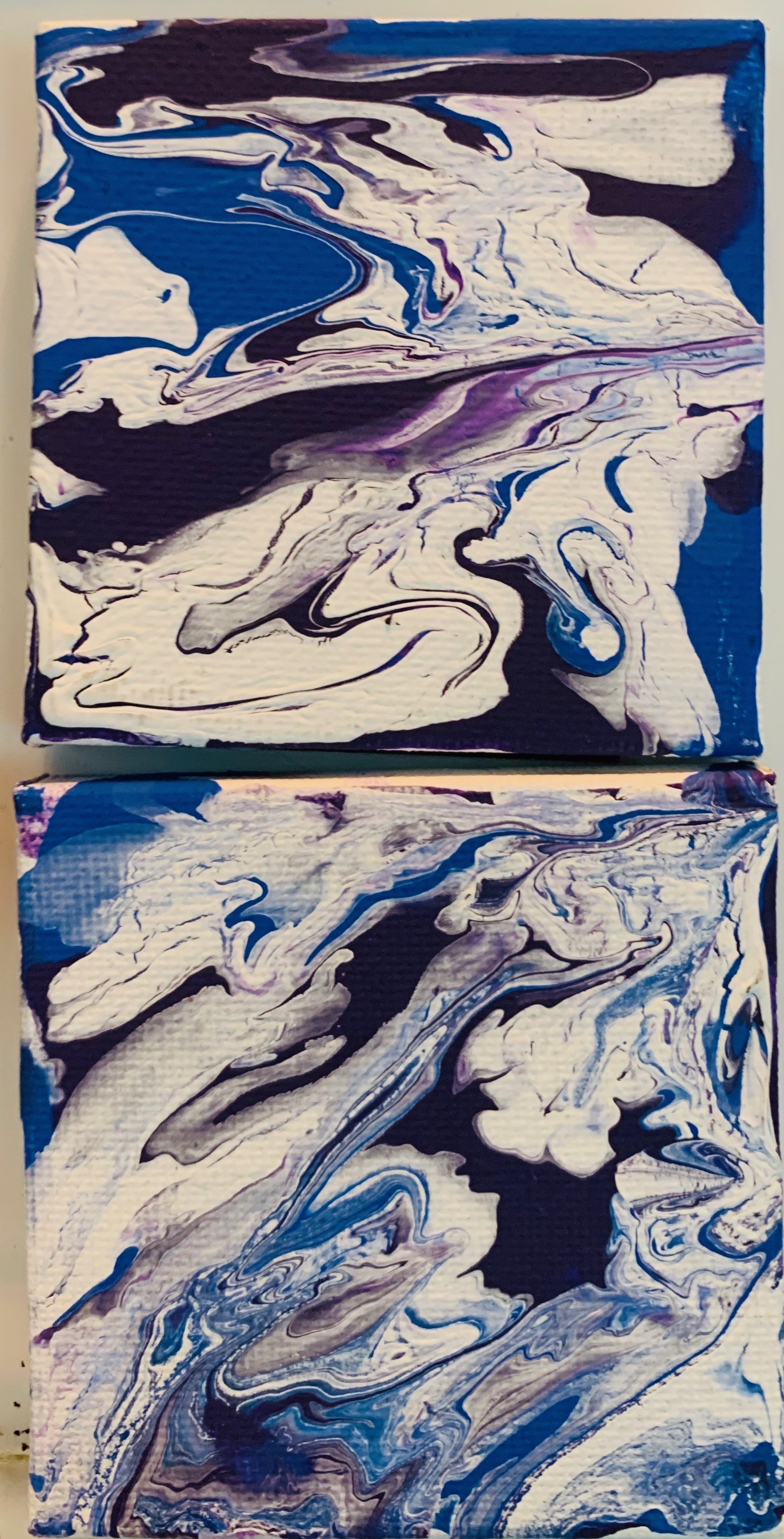 Colorful Blue, White, and Violet Magnetic Marble Set, Made up of Two 3x3 Canvases