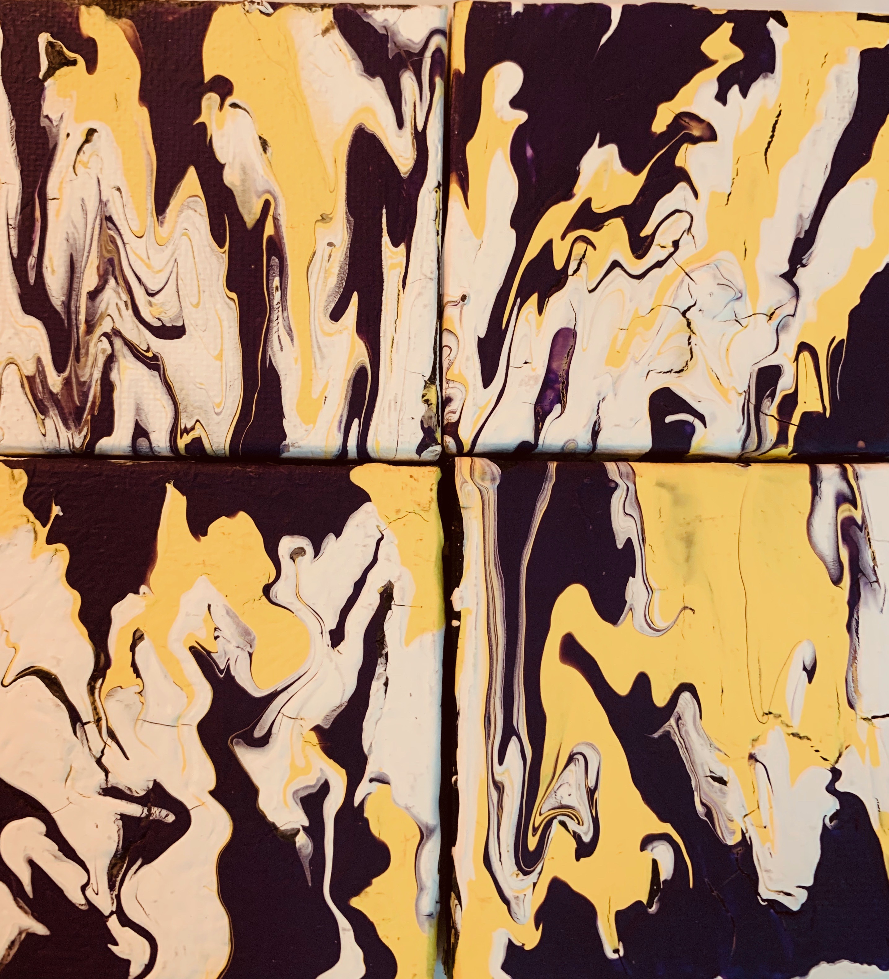 Colorful Violet, White, and Yellow Magnetic Marble Set, Made up of Four 3x3 Canvases