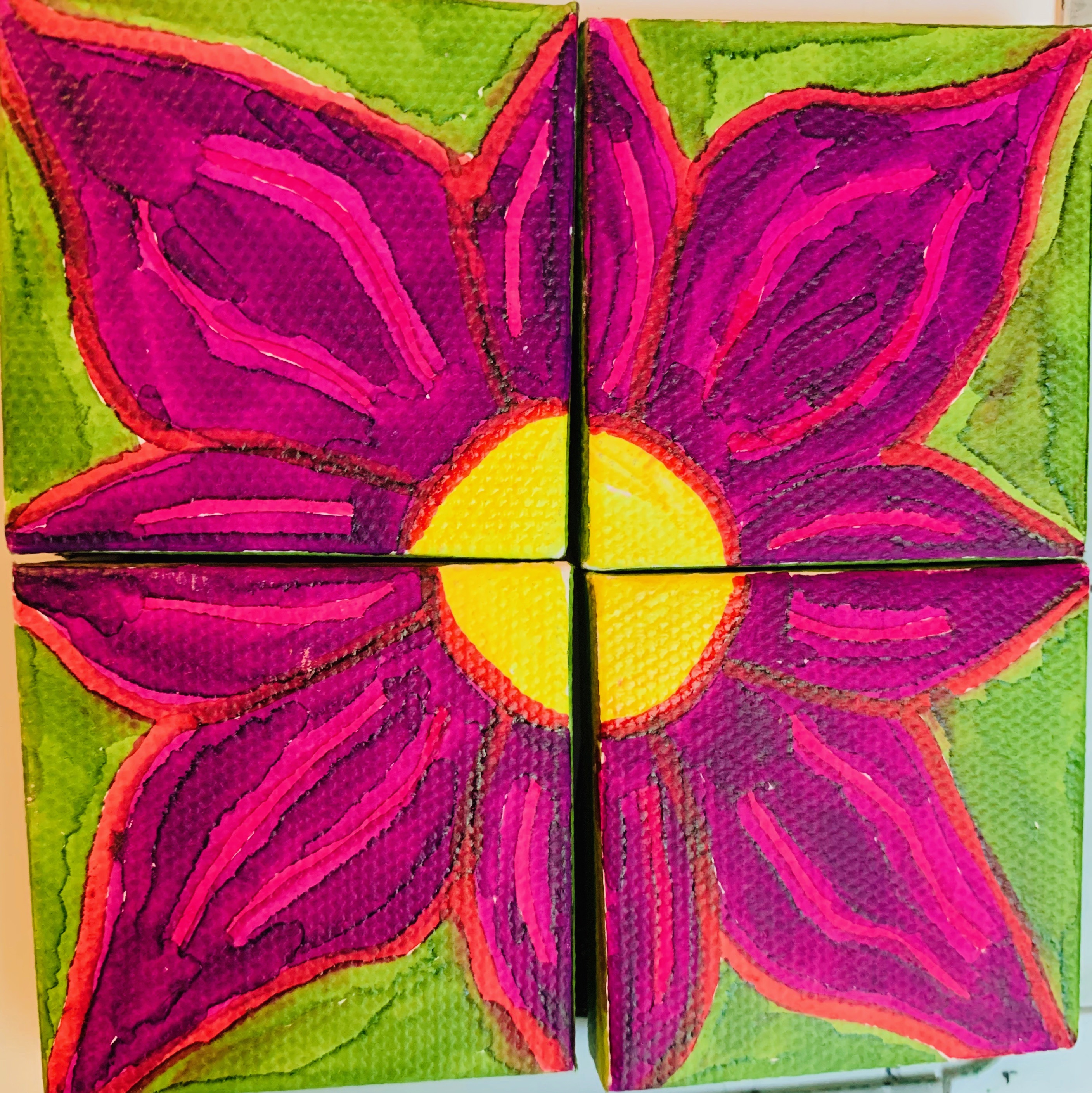 Beautiful Magnetic Purple Flower Set, Made up of Four 2x2 canvases