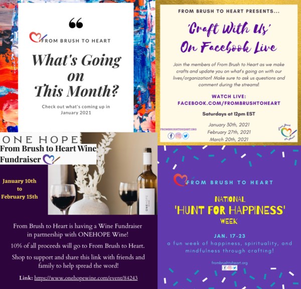 Hello FBTH Family! Happy New Year to you! We wish you a happy and safe 2021. We have a whole slew of new and exciting events to start off the year: -ONEHOPE Wine Fundraiser! From January 10th to February 15th, you can purchase wine through our link on ONEHOPE. From Brush to Heart will receive... Continue Reading →