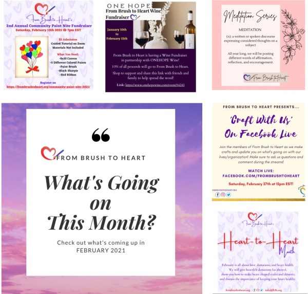 Hello FBTH Family! We hope you are doing well and staying safe. We have a whole slew of new and exciting events for February: -ONEHOPE Wine Fundraiser! From January 10th to February 15th, you can purchase wine through our link on ONEHOPE. From Brush to Heart will receive 10% of the proceeds from the purchases made... Continue Reading →